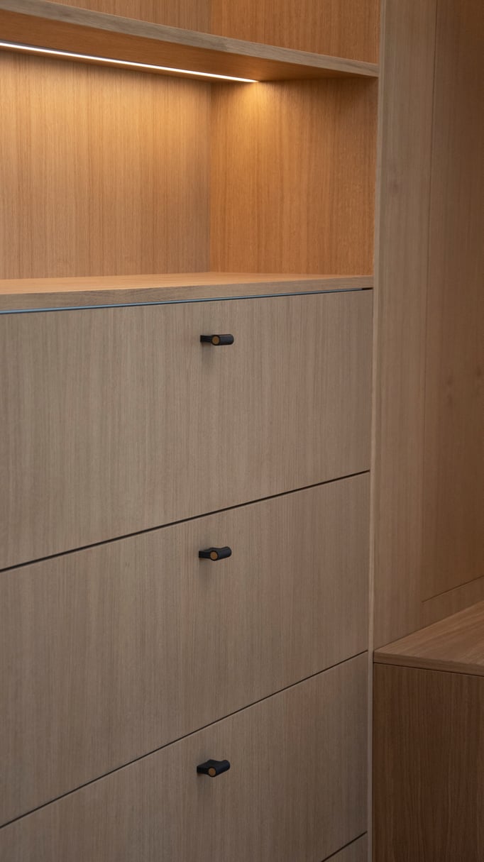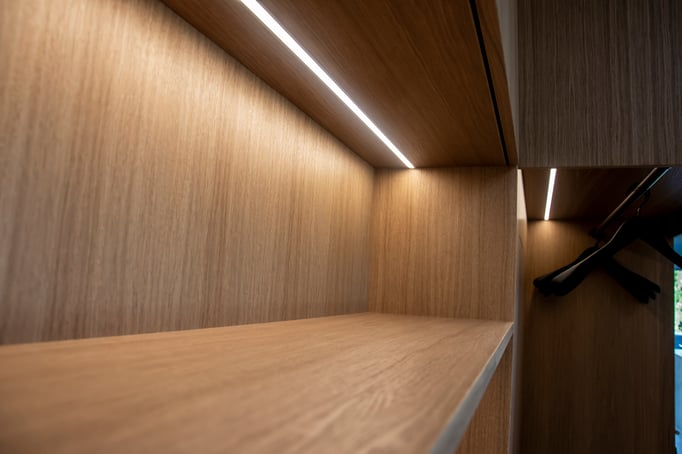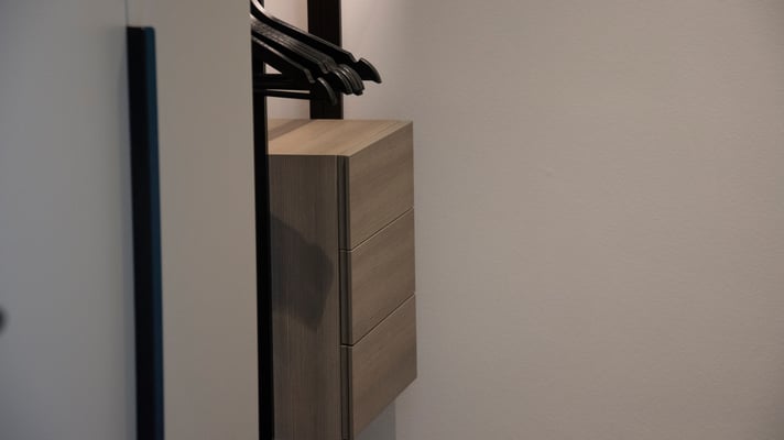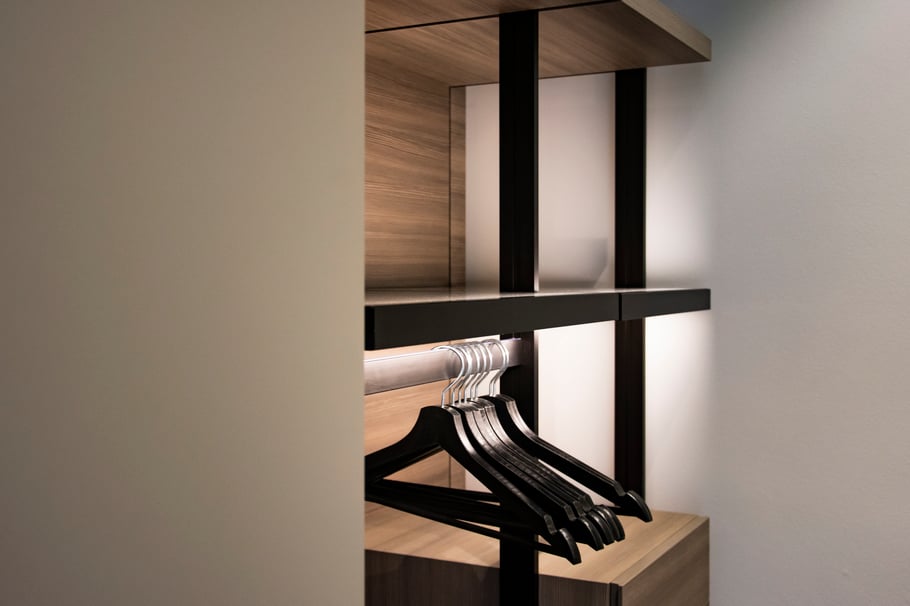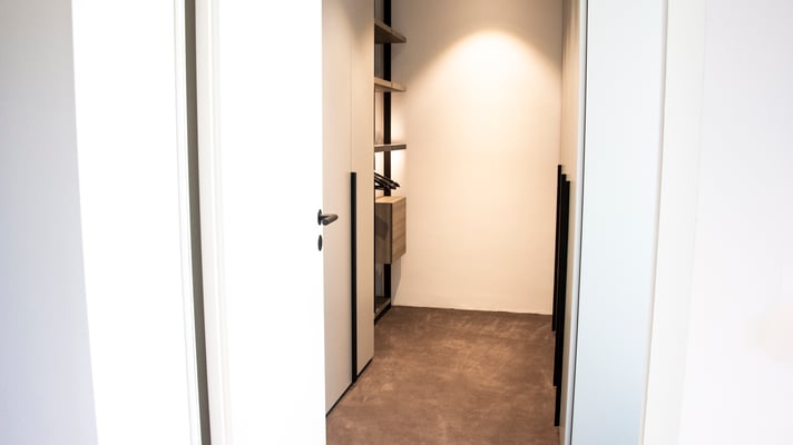 Kein Kasten mehr im Schlafzimmer, dafür ein separater Raum mit der ultimativen Menge an Platz (Lema). Doch darf hier und da, dank eines offenen Regals mit tollem Lichteffekt, etwas präsentiert werden. Perfekt geeignet für den Tagesschmuck oder schöne Accessoires, die einem schon bei Tagesbeginn Freude bereiten.