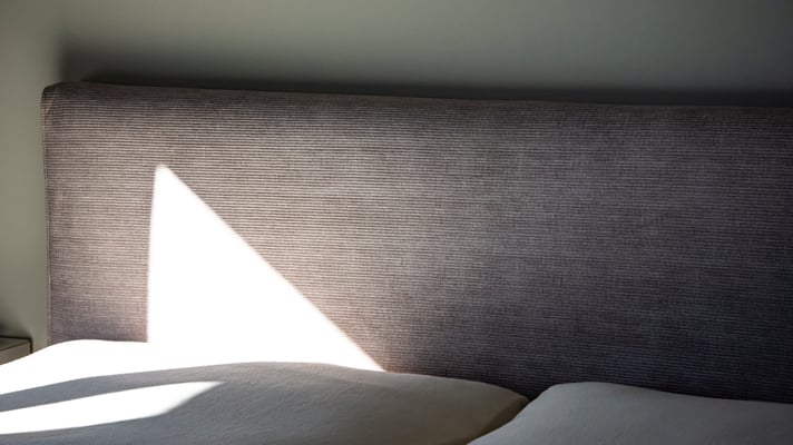 Im Schlafzimmer werden die Nächte zukünftig himmlisch in einem motorisierten Boxspringbett (Schramm) verbracht. Mit griffig weichem cordähnlichem Stoff ist dieses Polsterbett für den perfekten Schlaf zuständig. Per Fernbedienung können die Positionen pro Seite frei gewählt und per Knopfdruck verändert werden.