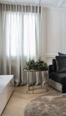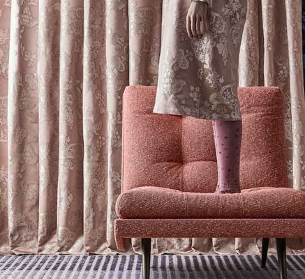 Besondere Stoffe - Trend Leine oder hochwertige, recycelte Stoffe - und Konfektionsarten geben dem Vorhang seinen einzigartigen Auftritt.